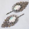These filigree riveted bobby pins are some con favorites, bringing a little bit of color and a little elegance to both classy events and everyday situations. Each listing is for a pair. The clips are just over 2 1/2″ from top to bottom and about 1″ wide.